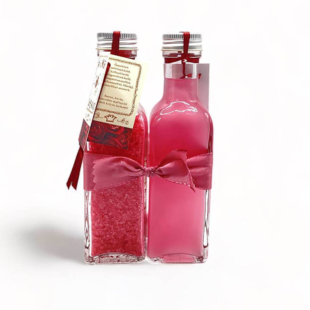 Tusfürdő:Illata: rózsaMérete: 8x4x15cmŰrtartalom: 2db 100 mlAnyaga: Üveg, Só, Illatanyag